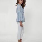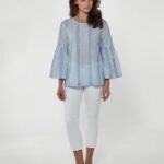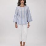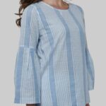 Keep it elegant and stylish with our new white & blue striped blouse featuring unique sleeves that flare out, giving the blouse an air of lightness. Crafted from ultra-soft 100% cotton that feels as good as it looks, offering breathability and all-day comfort for effortless styling.